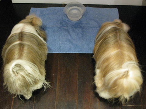 a ja również mam 2 shih tzu, dwie dziewczyny 🙂 to najwspanialsza rasa. moje wyjadają sobie nawzajem z misek – wymieniają się jakby sobie dawały znak 😉 mała to jeszcze szczeniaczek, dużo się kotłują i ganiają, a też zapuszczam im włosy (choć jeszcze nie są takie długie jak Twoje), więc wiem, co to znaczy 😉 na szczęście uwielbiam ich pielęgnację i zajmuję się tym sama, więc co tydzień mamy psie spa w domu 😉